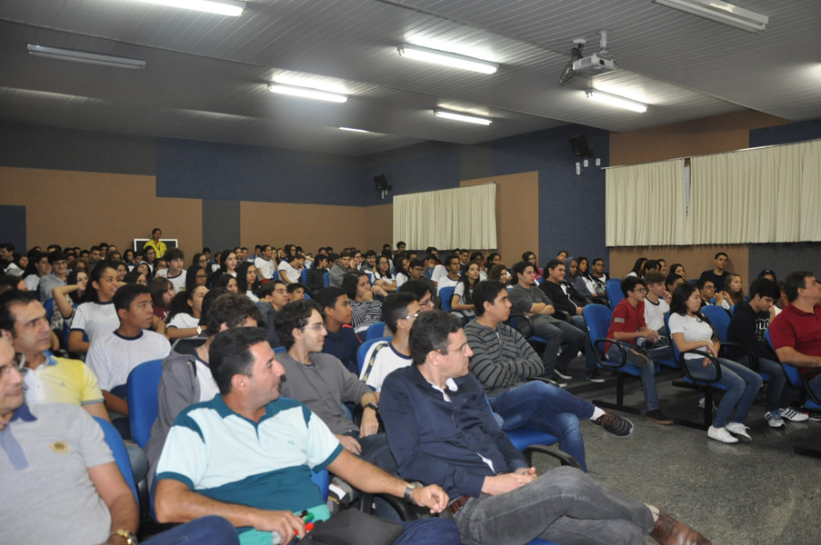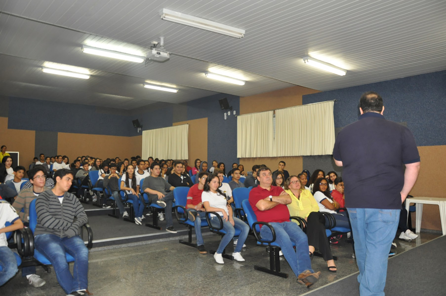 Os alunos do Ensino Médio participaram na manhã desta quarta-feira, 1, de palestra com o professor André Guadalupe. Engenheiro Aeronáutico formado pelo ITA, trabalhando a 25 anos com educação, ele abordou o tema Aluno de Alto Desempenho, onde foram destacados aspectos relacionados aos sonhos, estratégias de estudo, resiliência e determinação.